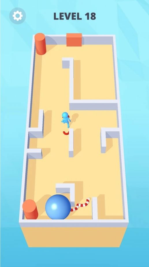 1、控制游戏角色在这里进行移动,在障碍物中进行奔跑,后面会有一个小球被绳子绑住,需要将它弄断。