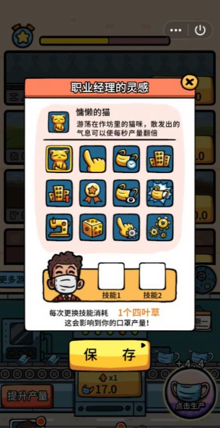 2、玩家在口罩的生产方面,可以听听职业经理人的意见,他会告诉你如何提高生产效率。