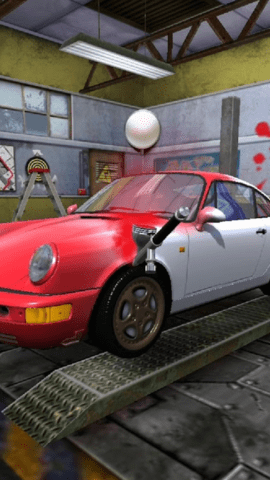 1、3D的游戏画质设计,千斤顶等不同的道具使用,真实的模拟汽车维修店。