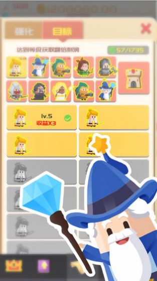 3、放置休闲的游戏方式。快速点击升级,各种隐藏的天赋技能助你打败魔王。