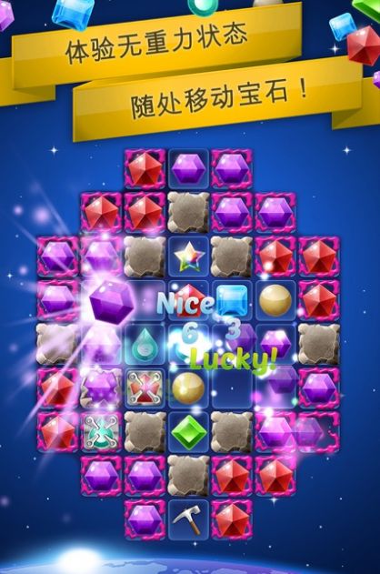 银河宝石消消乐是一种可以从消除的各种宝石中赚取红包的宝石休闲益智类游戏,玩法和全面开启匹配的三颗或更多的宝石是为你准备的。目的是迅速把它们添加到消除和各种道具中,而自由将执行消除和完成分配给消除的任务,从而得到大量自己想要的红包。