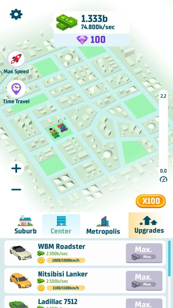 1、购买新车来让人们有更多的选择,还能点击升级,将所有属性提升到最高;