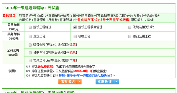 每年一次的考试,课程有效期到考试结束后三天,包含的课程主要有一建、二建、造价、职称英语、经济师、执业药师