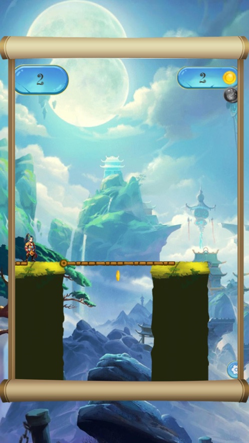 2、通过桥梁时你还可以点击屏幕来控制人物拾取金币获取高分。