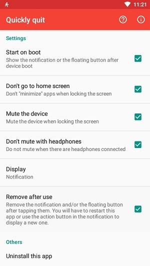快速退出应用程序可以帮助你快速启动当前软件和应用程序并锁定屏幕,这是防止你女朋友查看帖子的最佳选择,而且这个软件还可以帮助你静音手机