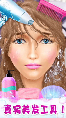 1、你自己在游戏中首先可以使用剪刀,给白雪公主设计一个完美的发型。