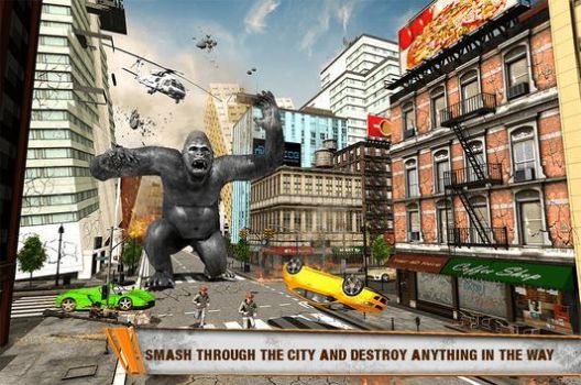 大猩猩横冲直撞是一个超级经典的大猩猩模拟冒险游戏,玩家将扮演一个巨大的大猩猩,任务是把自己变成一个超级巨大的怪物大猩猩。通过吞食各种食物来增加他的体型和防御,但是要小心,人类有强大的武器,所以玩家一定不能让自己被杀死,并且保持冷静。