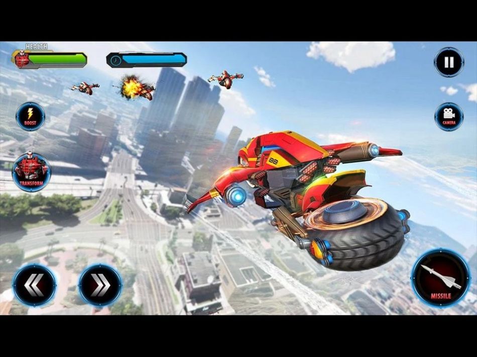 3、炫酷的飞马可以轻松的飞行在各种地方,超级快速的摩托形态和强大的机器人。