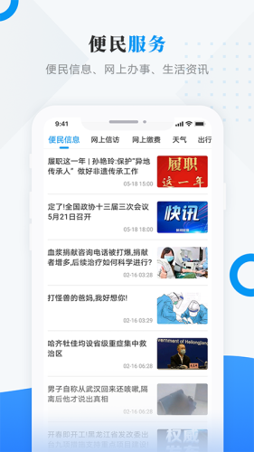 - 便民服务:便民信息、网上办事、生活资讯
