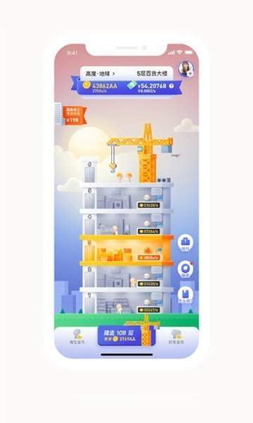 3、精心盖出楼王,额外获得丰厚的奖励哦。尽情购物,盖起摩天大楼。挑战自己,把楼盖去外太空吧