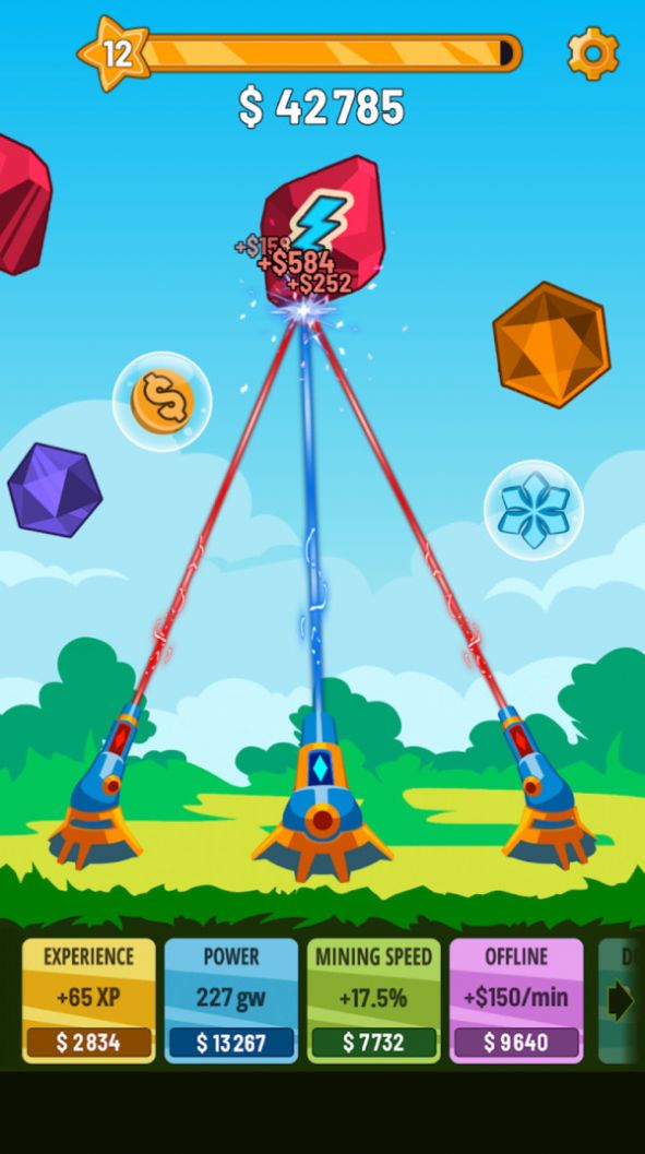 水晶大炮射击是一款趣味闯关游戏,玩家需要在关卡射击水晶炮,每一个水晶都能承受不一样的的攻击,你需要粉碎这些水晶并收集它们来完成任务。你必须提高你的水晶加农炮的效率,升级你的加农炮,使它的攻击伤害更加频繁快速。只有这样,你才能不断地收集晶体。