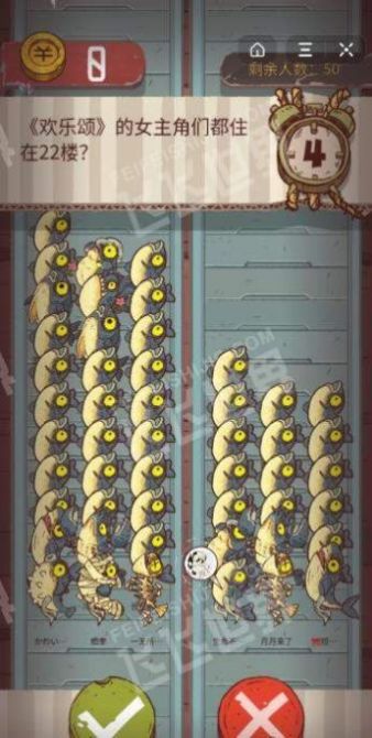 2、当你每次答对一道题目,咸鱼就会消失一只,但是答错的话,咸鱼的数量就会增加。