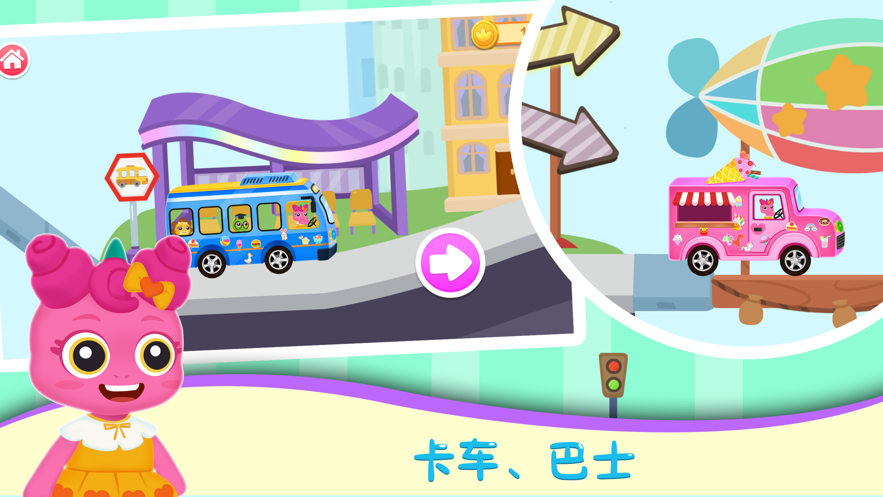1、互动迷你游戏供孩子们学习了解汽车,救火车,公共汽车,救护车等汽车的功能;