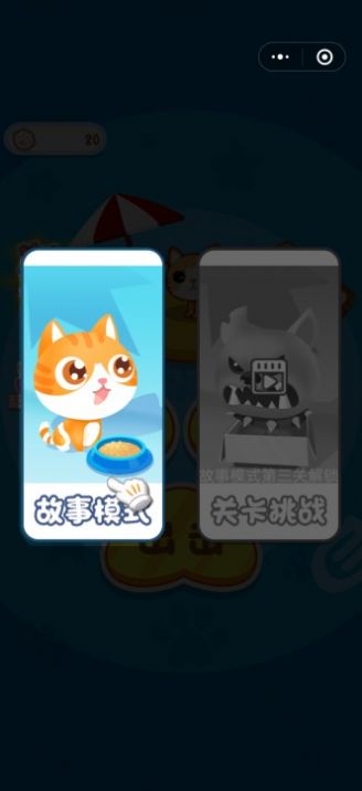 1、一开始免费收养一只橙色的大猫,攻击力正常,玩家需要进入故事模式才能挑战并收集金币。