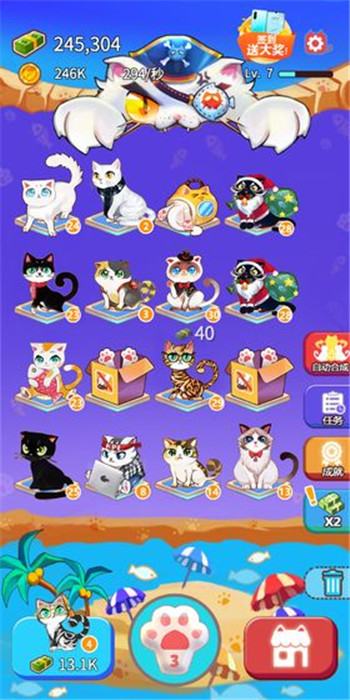2、游戏中的相同等级的猫咪就可以合成,进化成全新的猫咪。