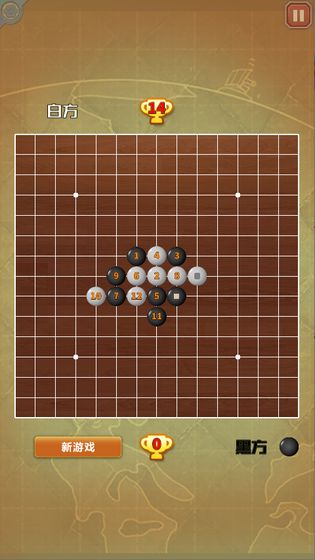 1、画面简洁而又不失精致的五子棋游戏,古色古香的棋盘与黑白棋子让人赏心悦目。