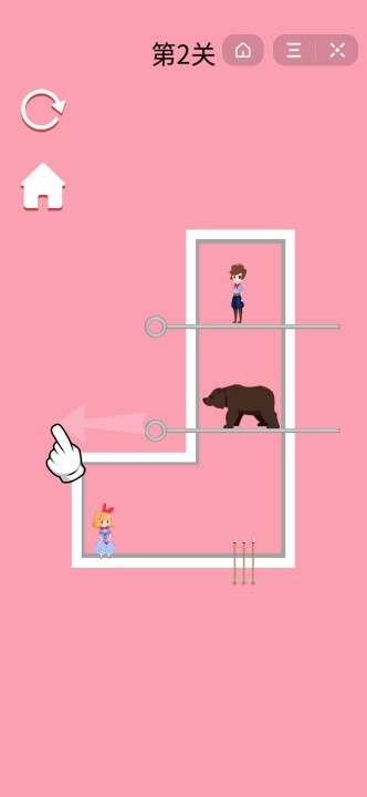 帮兄弟约会是小伙伴们非常熟悉的一种解谜闯关游戏。你在这里的任务是帮助你的兄弟成功约会。在这个过程中,会有很多困难。你必须找到合适的方式来拔针,并帮助你的兄弟顺利而安全地见到他的伙伴,这样闯关才能成功并赢得相应的奖励