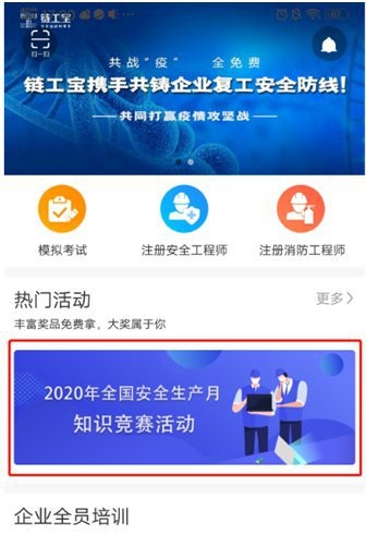帮助员工学习、掌握更多安全知识,提高挑战答题的正确率。点击活动页面的“练功房”,关注“链工宝”微信公众号,在下方菜单栏选择“练功房”,可进行答题练习。
