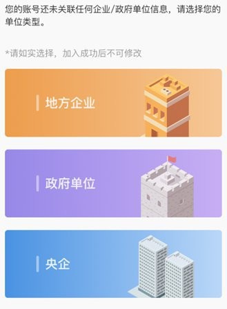 2.本次答题活动的单位类型分为:地方企业、政府单位、央企,请确认自己所在单位类型,点击相应按钮。