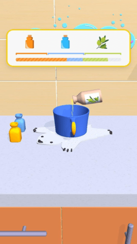 1、卡通的简洁游戏画风,复杂的步骤真实的模拟肥皂的制作。