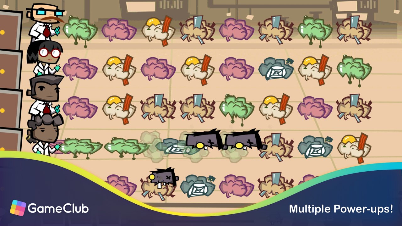 2、垂直或水平匹配大脑以消除以它们为食的怪物,整理组合,玩家们将获得可以用来带给您优势的物品。