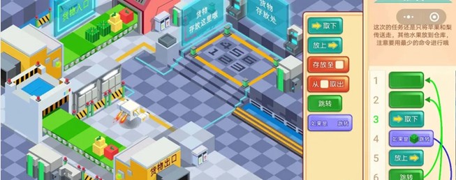 2、游戏每一关都有特定的任务,玩家需要根据任务和指令模块,来完成对机器人的行动编码。