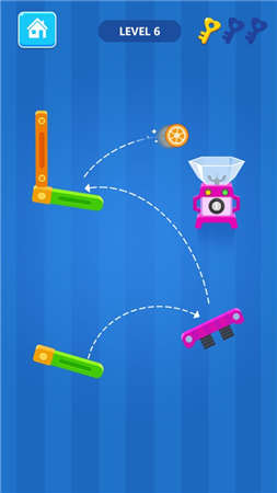 2、点击屏幕,尝试着利用挡板将可口的水果弹进不远处的榨汁机,调整好弹射角度;