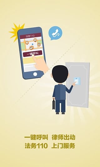 1、法务110,用户一键下单,便可将专业匹配、距离最近的律师送到用户身边,享受律师提供面对面的法律服务,更可解决用户紧急情况下的刚性需求。