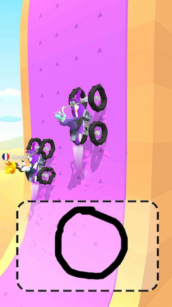2、通过勾画不同的轮胎,越过各种稀奇古怪的赛道,向终点发起冲锋。