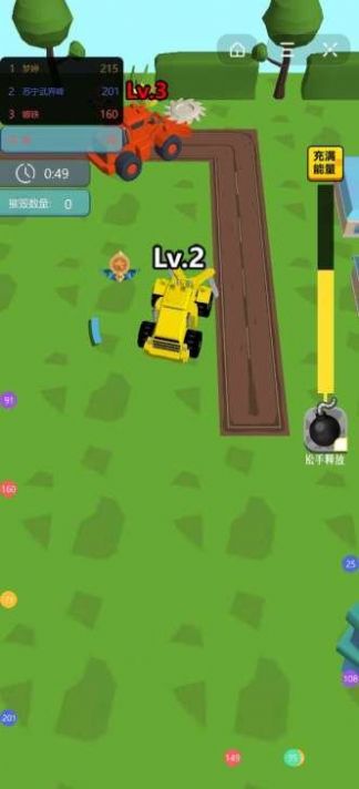 1、多人竞技模式,每个人玩家都继承了家里的挖掘机,体验一场搞笑大战。