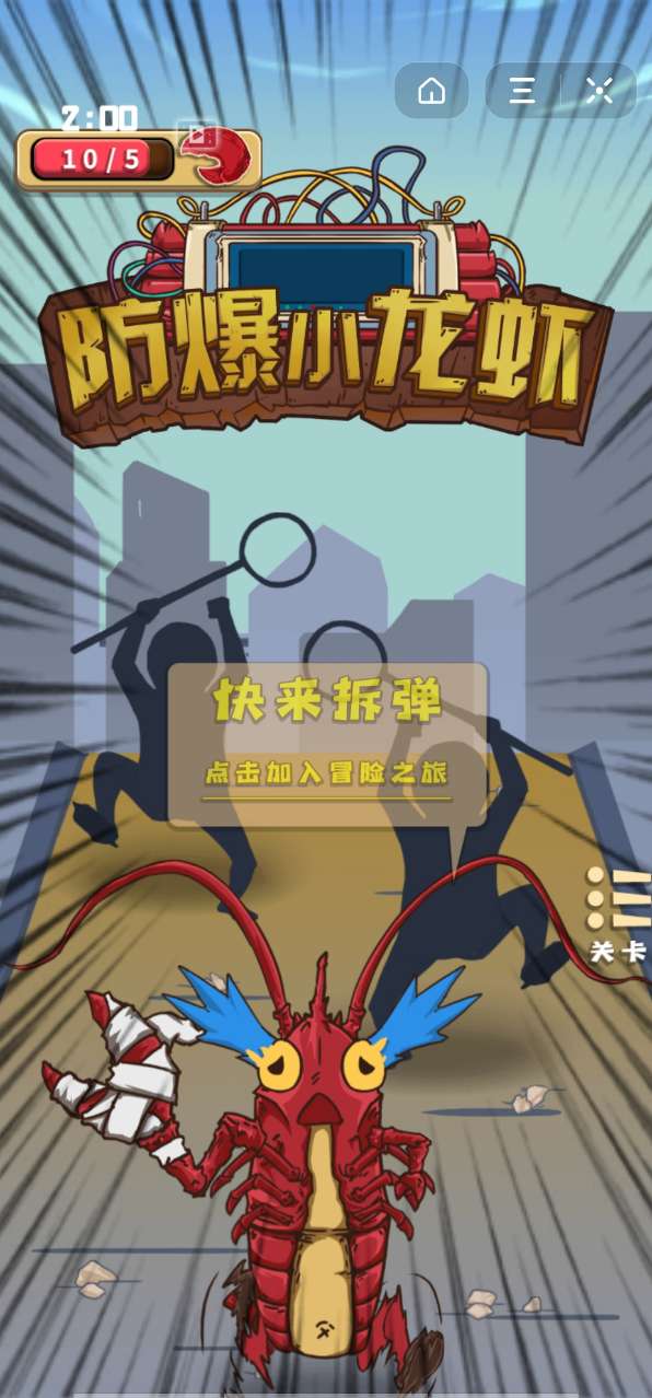 防爆小龙虾是一个非常有趣的游戏,在那里玩家会变成小龙虾。你的任务是拆除各种定时炸弹。每个炸弹都有倒计时。只有在时间为零之前拆除奖励,你才能得到它,否则你会被杀死。超多的关卡正等着你的挑战。