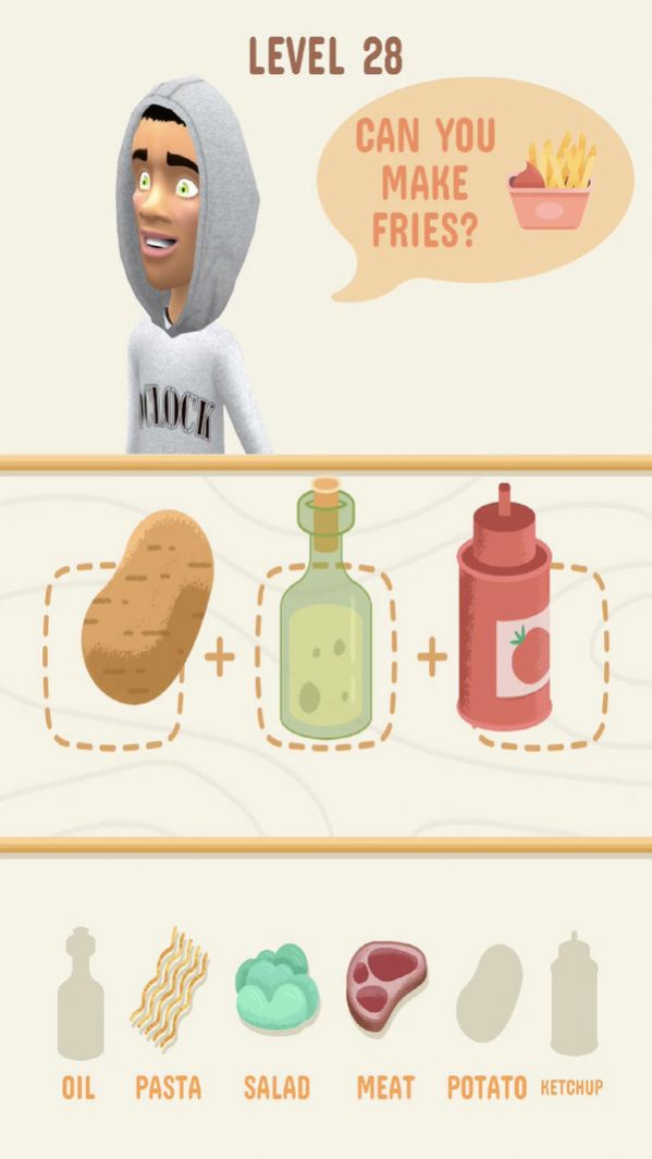 3、土豆,番茄等不同的食材自由的组合,简单的点击制作美味的美食。