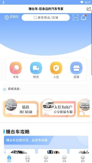 赚台车商户版是线上汽车贸易商户平台的贸易服务,提供汽车消费(汽车销售、汽车配件、维修、美容、保养、保险损失判定等)的全程服务)。