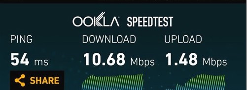 除了通讯信号,网络信号也是很重要的一点,我们来看一下它的网速相比中国移动电话卡如何,通过软件SPEEDTEST进行测试,测试环境依旧为我日常的办公环境内。