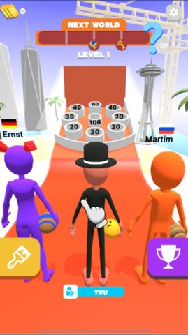 3、你需要使用你自己手中的道具击打那些溜溜球,就像击打保龄球一样。
