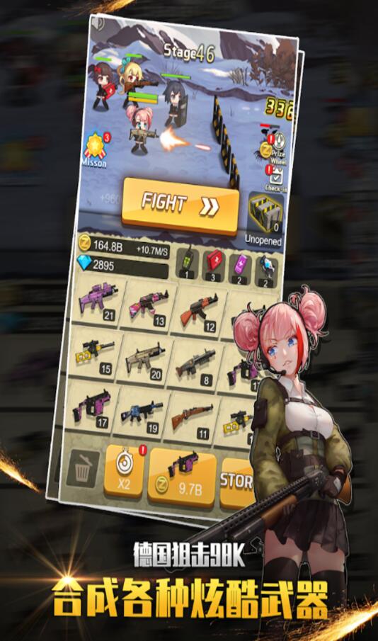 2、丰富武器库解锁全新的武器,融合合成玩法元素创造更高等级枪支。
