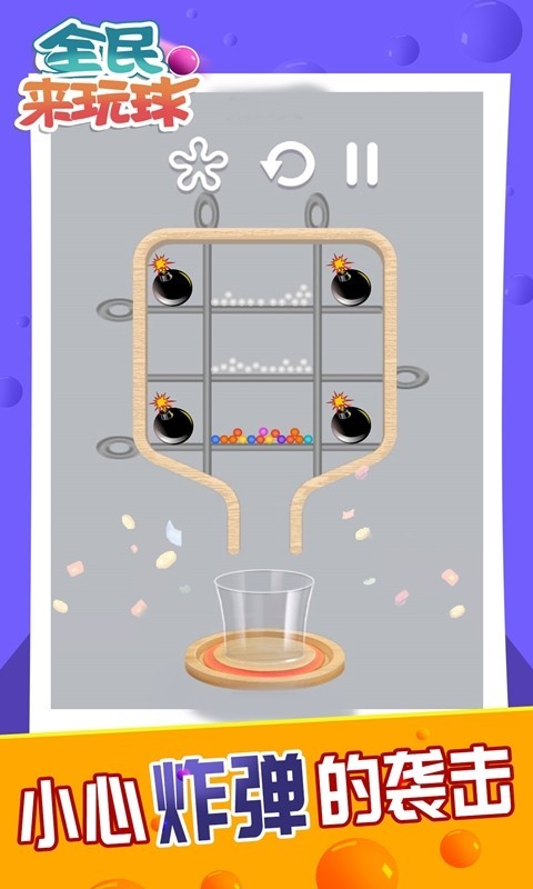 1、将你的球球开始进行收集到玻璃瓶中,有很多的炸弹存在,要非常小心;