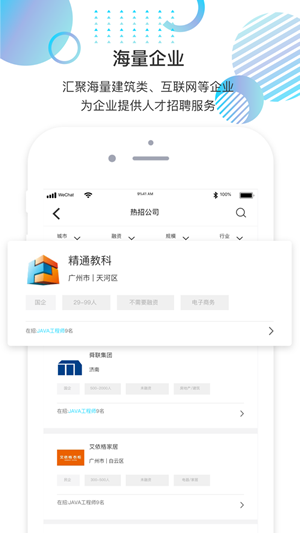 就聘了汇聚海量建筑类、互联网等企业,为企业提供人才招聘服务;