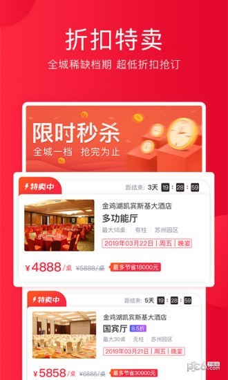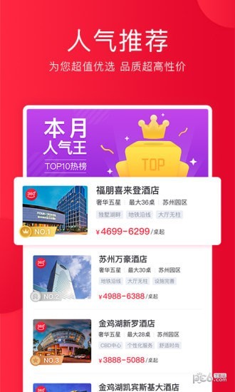 人人宴app是一款为平台新人提供的婚宴服务,在人人宴app中,可以快速搜索周边酒店提供的婚宴服务信息,在线预约去店铺办理婚宴。