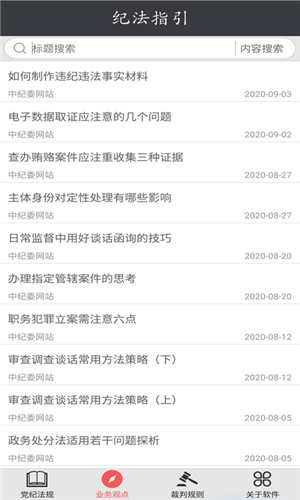 纪法指引app是一款手机应用软件,收集党纪法规和纪检法律衔接的数据。它包含357个纪律和法律文件,641个商业观点,309个指导性案例和一些裁判规则。纪检监察软件使用户能够在手机上快速查找需要的纪检监察文件和定位相关内容,节省了到处查找信息的时间,使办公更加方便。