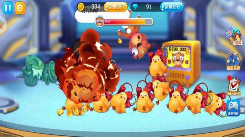 无限乐消是一款非常有趣的休闲游戏,游戏操作非常简单。你可以在关卡使用各种道具攻击小棕熊。单纯的游戏操作很开心,通过打不同的位置以获得更高的分数,你可以花钻石去买新的武器和道具,金币可以用来升级武器,每天都有大量的任务提供给玩家,通过参加每天的抽奖获得超多的钻石。