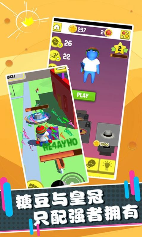 2、利用武器锤飞敌人即可通关,炫酷糖豆皮肤等你解锁,各种棍棒等武器任你选择;