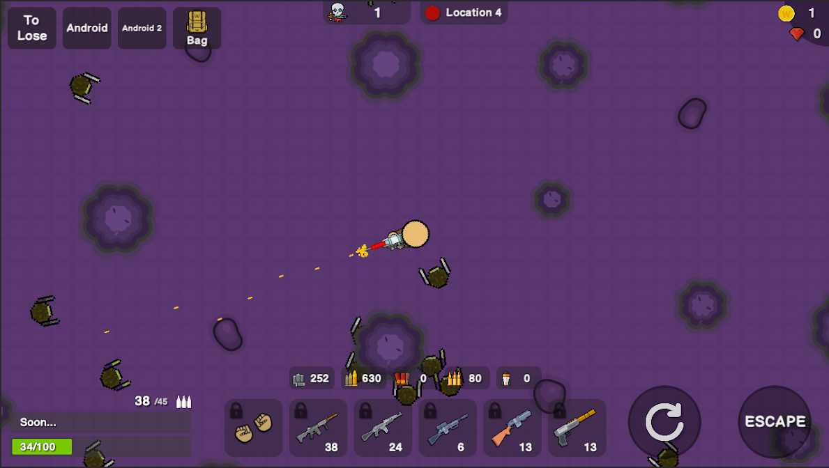 僵尸大逃杀2D是一款简单的枪战射击游戏。在不同的地图世界里,有许多资源,但也有许多僵尸守卫着它们。你需要收集足够的武器和弹药,你才能在这里获得资源,并继续生存下去,直到有实力与最强的僵尸之王对抗。