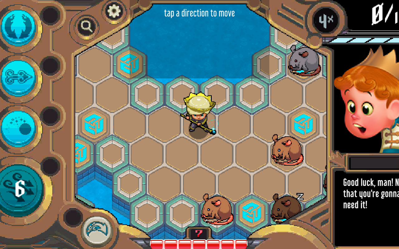 1、玩家需要控制角色与敌人在蜂巢棋盘上周旋,通过将其推下水来击杀敌人。