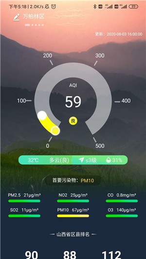 1、山西空气app为你带来了舒适的空气质量查看功能
