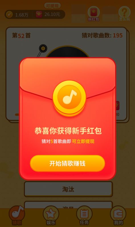 2、实时听歌获取,玩家通过听歌曲猜歌名来闯关,即可获得红包奖励,闯关越多奖励越高。