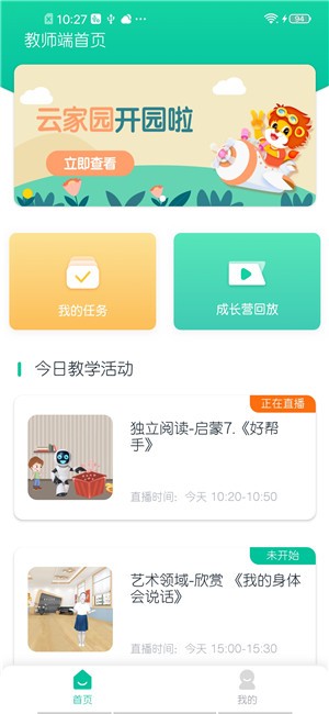 柒彩未来教师端是面向幼儿园教师的,以云家园成长营直播和云家园互动营教学为核心的功能,为教师打造最好的教学工具和办公软件。