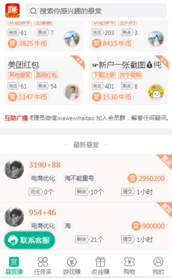 【任务多】每天都有新的任务发布,无论是抖音、海淘新闻,趣头条,拼多多,趣步,云闪付,招商银行掌上生活,调查问卷,新闻,购物评论,下载软件赚钱,微信小程序,微信公众号关注、淘宝兼职、运动赚钱、挖矿赚钱等多种微任务赚钱;
