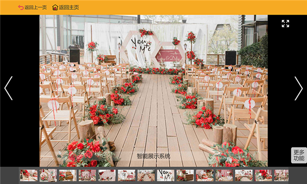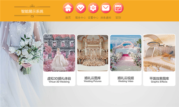 系统内置几千套无水印婚礼现场图片,婚礼现场短视频,婚礼效果图以及3D婚礼虚拟体验系统。带给新人沉浸式婚礼体验,助力策划师谈单!