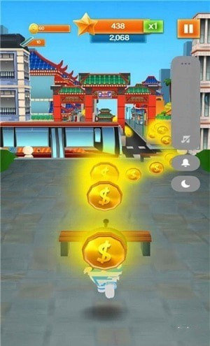 1、冲刺的道路上抢夺更多的金币,升级你的角色,获得更加强大的能力。